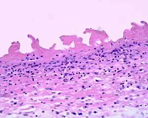 Uremic pericarditis is a form of pericarditis. It causes fibrinous pericarditis.[1] The main cause of the disease is poorly understood.[2]