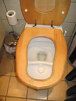 A toilet used to facilitate the separation of human waste products is called a urine diversion toilet or UDT. The bowl usually has two separate receptacles which may or may not be flushed with water. If flushed, the toilet is usually referred to as a urine-diversion flush toilet or UDFT. If not flushed, it is a dry toilet with either drying or composting for the feces. If the collected feces are dried, it is called a urine-diverting dry toilet or UDDT (also called urine-diversion dehydration toilet).[2] If the collected feces are composted, it is called a urine-diverting composting toilet.