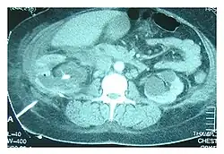 - ↑ Lahiry, S. K.; Alkhafaji, A. H.; Brown, A. L. (August 1978). "Urinothorax Following Blunt Trauma to the Kidney". The Journal of Trauma: Injury, Infection, and Critical Care. 18 (8): 608–610. doi:10.1097/00005373-197808000-00010. ISSN 0022-5282. PMID 682222 – via Europe PMC.