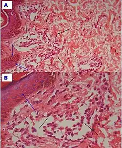 - ↑ 2.0 2.1 2.2 2.3 Johnstone, Ronald B. (2017). "40. Cutaneous Non-lymphoid infiltrates". Weedon's Skin Pathology Essentials (2nd ed.). Elsevier. p. 726. ISBN 978-0-7020-6830-0. Archived from the original on 2023-01-10. Retrieved 2021-09-24.