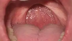 - Xerostomia (dry mouth) and dry throat, which may be related to loss of the uvula.[6]
