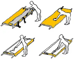 - the casualty is lifted with a scoop stretcher. The scoop stretcher is put on the mattress and opened to release the casualty;