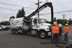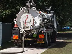 Several types of non-centralized sanitation systems are served by vacuum trucks. They are used to empty septage from cesspits, septic tanks, pit latrines, and communal latrines, for street cleanup, for sewer clean out, and for individual septic systems.[6] The trucks are used in the cleaning of sanitary sewer pumping stations. Vacuum trucks are used to empty portable toilets. In commercial aviation, vacuum trucks are used to collect waste from airplane toilets.
