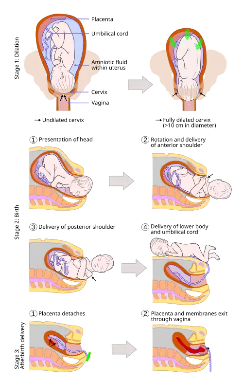 15. 1 2 Hutchison, Julia; Mahdy, Heba; Hutchison, Justin (2021), "Stages of Labor", StatPearls, Treasure Island (FL): StatPearls Publishing, PMID 31335010, archived from the original on 2021-09-19, retrieved 2021-09-13
