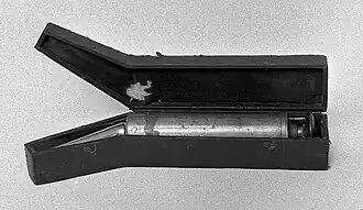A vaginal syringe was an object used in the 19th century in the Western world for douching, treating diseases and for birth control. Vaginal syringes were fairly common at the time, but were not openly discussed because of taboos about discussing feminine hygiene.[1] Vaginal syringes were most often made of metal, glass or Bakelite.[2]