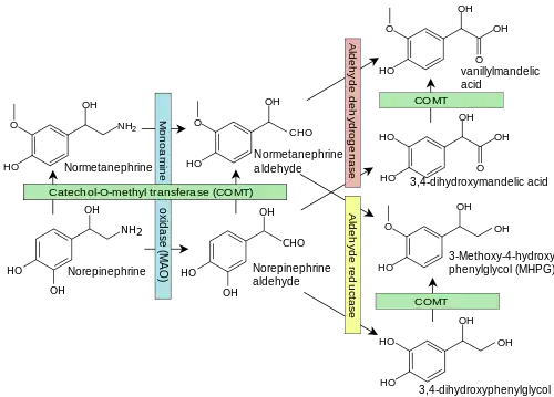Vanillylmandelic acid (VMA) is a chemical intermediate in the synthesis of artificial vanilla flavorings[1] and is an end-stage metabolite of the catecholamines (epinephrine, and norepinephrine). It is produced via intermediary metabolites.