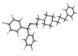 - ↑ Matecka D, Rothman RB, Radesca L, de Costa BR, Dersch CM, Partilla JS, et al. (November 1996). "Development of novel, potent, and selective dopamine reuptake inhibitors through alteration of the piperazine ring of 1-[2-(diphenylmethoxy)ethyl]-and 1-[2-[bis(4-fluorophenyl)methoxy]ethyl]-4-(3-phenylpropyl)piperazines (GBR 12935 and GBR 12909)". Journal of Medicinal Chemistry. 39 (24): 4704–4716. doi:10.1021/jm960305h. PMID 8941383.