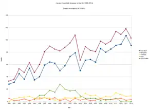 - ↑ 6.0 6.1 6.2 6.3 "About vCJD". CDC. 10 February 2015. Archived from the original on 2 May 2019. Retrieved 22 January 2018.