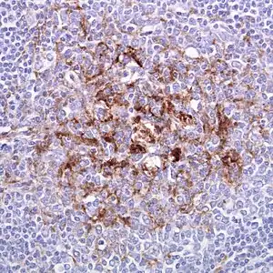 | Biopsy of the tonsil in variant CJD. Prion protein immunostaining. | |