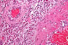 The cause is often unknown, though certain cases may be triggered by an infection, medication, or other disorder.[3][5] Risk factors depend on the condition in question.[3] The underlying mechanism is often that of an autoimmune disease with neutrophils entering the inner lining of the vessel.[6][4] The diagnosis may be suspected based on blood tests, such as ESR or CRP, medical imaging, and biopsy.[3][5]