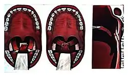 - ↑ Tezuka, Masahiro; Ogata, Yuko; Matsunaga, Kazuhide; Mitsuyasu, Takeshi; Hasegawa, Sachiyo; Nakamura, Norifumi (2014-05-01). "Perceptual and videofluoroscopic analyses of relation between backed articulation and velopharyngeal closure following cleft palate repair". Oral Science International. 11 (2): 60–67. doi:10.1016/S1348-8643(14)00009-3. ISSN 1348-8643.