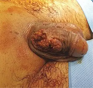 - ↑ 10.0 10.1 Philippou, Prodromos; Kitsios, Christos; Miliatou, Maria; Poullou, Christiana; Konstantinou, Pavlos (2019). "Organ-Sparing Surgery for a Giant Verrucous Carcinoma of the Penile Shaft: A Case Report and Review of the Literature". Case Reports in Urology. 2019: 1537379. doi:10.1155/2019/1537379. ISSN 2090-696X. PMC 6408996. PMID 30918740.