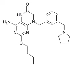 Vesatolimod (GS-9620) is an antiviral drug developed by Gilead Sciences, which acts as a potent and selective agonist of Toll-like receptor 7 (TLR7), a receptor involved in the regulation of the immune system. It is used to stimulate the immune system, which can increase its ability to combat chronic viral infections. Vesatolimod is in clinical trials to determine whether it is safe and effective in patients with Hepatitis B and HIV/AIDS,[1][2] and has also shown activity against other viral diseases such as norovirus and enterovirus 71.[3][4]