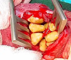 - Horses - Floating (grinding down) of uneven teeth edges and removal of wolf teeth.[11]