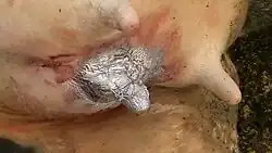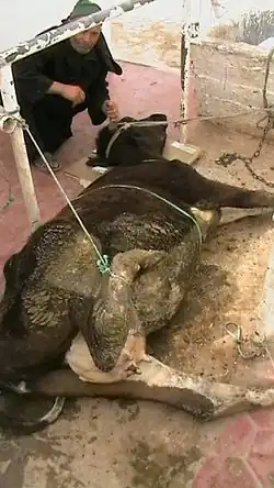 Wounds occurring in the udder and teats of cows are more difficult to repair, due to the difficult access and sensitivity of the organ, and because deep anaesthesia may not be applied to cows.[18]