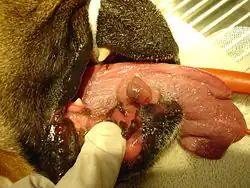 - Dogs - Dental prophylaxis is commonly performed to remove tartar and treat periodontal disease. This procedure is usually performed under anesthesia. Other common procedures include extraction of abscessed or broken teeth, extraction of deciduous teeth, root canals, and removal of gingival hyperplasia and epulides.