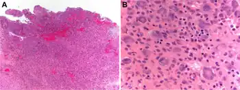 - ↑ Murphey MD, Rhee JH, Lewis RB, Fanburg-Smith JC, Flemming DJ, Walker EA (2008). "Pigmented villonodular synovitis: radiologic-pathologic correlation". Radiographics. 28 (5): 1493–518. doi:10.1148/rg.285085134. PMID 18794322.