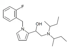 - ↑ US 4148907, Conti F, "Stereoisomers of 1-(1'benzyl-2'pyrryl)-2-di-sec.-butylaminoethanol and pharmaceutical compositions comprising same", issued 10 April 1979, assigned to Etablissement Viridis