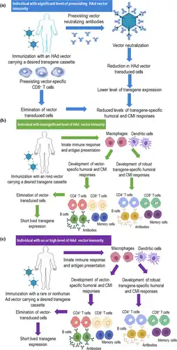 - ↑ 21.0 21.1 21.2 Fausther-Bovendo H, Kobinger GP (2014-10-03). "Pre-existing immunity against Ad vectors: humoral, cellular, and innate response, what's important?". Human Vaccines & Immunotherapeutics. 10 (10): 2875–2884. doi:10.4161/hv.29594. PMC 5443060. PMID 25483662.