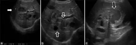 | a-c)Sonography images of male child diagnosed with hepatic visceral larva migrans | |