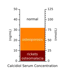 Mapping of several bone diseases onto levels of vitamin D (calcidiol) in the blood[48]