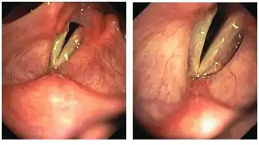 - ↑ 3.0 3.1 3.2 Dowdall J, Thompson C. "Paradoxical Vocal Fold Motion". Uptodate. Archived from the original on 8 September 2017. Retrieved 26 September 2018.