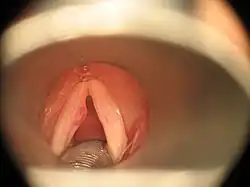- Physical Examination: the physical examination is performed using rigid or flexible endoscopy in order to examine the physiology of the vocal structures.[19]