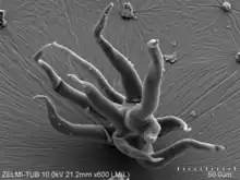 Franz et al. (2022, 2023), investigating newly recovered samples they date to 1.5 Ga, described the morphology and the internal structure of Volyn biota and reported the presence of different types of filaments, of varying diameters, shapes and branching in the studied organisms, and provided evidence of the presence of fungi-like organisms and Precambrian continental deep biosphere. Some fossils give evidence of sessility, while others of free-living lifestyle.[1][2]