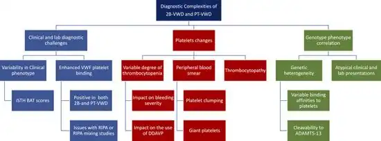 | Complexities of type 2B‐ and PT‐VWD diagnosis[2] | |