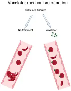 - ↑ 1.00 1.01 1.02 1.03 1.04 1.05 1.06 1.07 1.08 1.09 1.10 1.11 "Voxelotor Monograph for Professionals". Drugs.com. Archived from the original on 21 September 2021. Retrieved 16 September 2021.