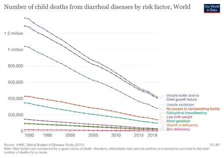 File:Mortality rate attributable to unsafe water, sanitation, and hygiene (WASH), OWID.svg|thumb|upright=1.8|Mortality rate attributable to unsafe water, sanitation, and hygiene (WASH).[1]]]