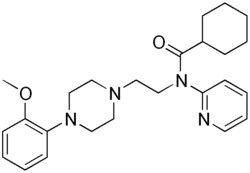 WAY-100635 is a piperazine drug and research chemical widely used in scientific studies. It was originally believed to act as a selective 5-HT1A receptor antagonist, but subsequent research showed that it also acts as potent full agonist at the D4 receptor.[1][2][3] It is sometimes referred to as a silent antagonist at the former receptor.[4] It is closely related to WAY-100135.
