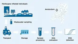 Wastewater surveillance is the process of monitoring wastewater for contaminants. Amongst other uses, it can be used for biosurveillance, to detect the presence of pathogens in local populations,[1] detection of new pathogen mutations and variants by genomic sequencing,[2] and to detect the presence of psychoactive drugs.[3]