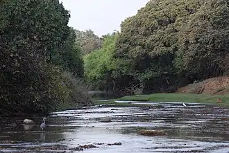 It is estimated that the available water resources in Benin are sufficient to meet the current and future demand, even if agricultural and industrial consumption are included. The current water use is about 1% of the available resources.[26] The total amount of renewable water resources in the country is estimated at 3,954 m³ per person and year,[27] an amount whereby water shortages only occur irregularly or locally according to a definition of Falkenmark and Widstrand.[28] 2000 km² or 1.8% of the total surface area of Benin (112,620 km²) is covered by water. Rainfall averages 1,039 mm per year, but varies considerably among region and season.[29]