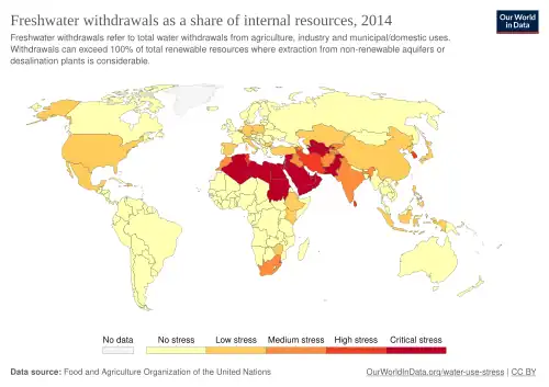 - ↑ "Water Scarcity | Threats | WWF". World Wildlife Fund. Retrieved 29 November 2020.