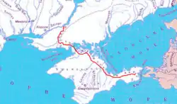 - ↑ "Pray For Rain: Crimea's Dry-Up A Headache For Moscow, Dilemma For Kyiv". Radio Free Europe/Radio Liberty. 29 March 2020. Archived from the original on 27 February 2021. Retrieved 14 February 2021.