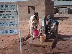 USAID(United States Agency for International Development)[69] supports rural water supply, sanitation and hygiene education in Northern Nigeria, in 46 communities in Bauchi, Kano and Sokoto States. USAID is partnering with Nigerian non-governmental agency Women Farmers Advancement Network (WOFAN), Action Against Hunger (NGO) and WaterAid.[70][71]
