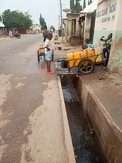 As of 2015, 67% of the total population of Nigeria had access to at least basic water supplies.[8][9] This was 82% of the urban population and 54% of the rural population. Most people in Nigeria do not have access to clean water, especially in the rural areas.[10] The global water sanitation and hygiene statistics shows that 79 per cent of Nigerians go through the challenge of water scarcity.[11] In 2015, about 60 million people lacked access to "at least basic" water. As for sanitation, only 33% of the total population had access to "at least basic" sanitation. This was 39% of the urban population and 27% of the rural population. Approximately 122 million people still lacked access to "at least basic" sanitation.[9][12]