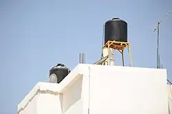 Due to unreliable water delivery, virtually every Palestinian house has at least one, most several, water cisterns to store water. In the West Bank, the management of water resources is subject to debate due to military regulations.[78]