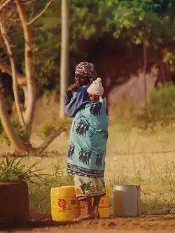 In 2015, 61% of the total population had access to an "at least basic water service", or 86% of the urban population and 44% of the rural population.[3] However, around 6 million people in Zambia still lack access to "at least basic water". As for sanitation, in 2015, 31% of the total population had access to "at least basic sanitation" service. 49% of the urban population had access to basic sanitation and 19% of the rural population. There are still around 11 million people who lack access to at least basic sanitation. Moreover, in 2015, 15% of the population in Zambia, defecated in the open.[7][8]