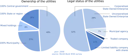 In the last two decades, the management of urban water supply and sanitation has been increasingly put in hands of newly created utilities. In some cases these water supply and sanitation utilities also supply electricity. The majority of these utilities are corporatized, meaning that they emulate a private company in terms of productivity and financial independence. Nevertheless, they widely differ in legal status and ownership structure.