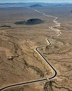 Cities that rely on more or less polluted surface water from the lower reaches of rivers have to rely on extensive and costly water purification plants. The Las Vegas Valley obtains 90% of its water from Lake Mead on the Colorado River, which has been affected by drought.[54] To supply a portion of the future water supply, Las Vegas plans to buy water rights in the Snake Valley in White Pine County, 250 mi (400 km) north of the city straddling the Utah border and other areas, pumping it to Las Vegas through a US$2 billion pipeline.[55] Phoenix draws about half of its drinking water from the Salt River–Verde River watershed, and about 40% from the Colorado River further downstream at Lake Havasu through the Central Arizona Project. Los Angeles obtains about half of its drinking water from the Owens River and Mono Lake through the Los Angeles Aqueduct,[56] with additional supplies from Lake Havasu through the Colorado River Aqueduct.[57] San Diego imports nearly 90 percent of its water from other areas, specifically northern California and the Colorado River.[58]