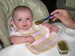 - ↑ "Your baby's first solid foods". NHS Choices. Archived from the original on July 18, 2016. Retrieved July 15, 2016.
