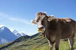 Two-step weaning is used to wean off beef calves from their dams over the space of a couple of weeks. With this method the calf is fitted with a nose flap that prevents suckling for a period of time, after which the calf is separated from the dam preventing contact.[27] The nose flap does not limit the calf from performing any behaviors other than suckling; they are still able to drink and graze normally.[26] Most research has shown that this method reduces the amount of stress that the calves endure. Studies show that prior to separation there is no change in feeding habits, social interaction to other members of the herd.[26] Once the nose flap is removed and the calves are separated from the dams, there has been data showing less vocalization, less pacing and spent more time eating than calves that were weaned on a more traditional method.[26]