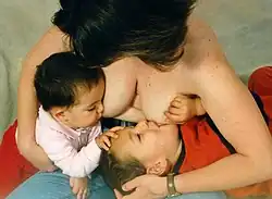 In some cultures, weaning progresses with the introduction of feeding the child food that has been prechewed by the parent along with continued breastfeeding, a practice known as premastication.[3] The practice was important throughout human history in that it naturally gave a child a greatly improved protein source in addition to preventing iron deficiency.[4] However, premasticated food from caregivers of lower socioeconomic status in areas of endemic diseases can result in the passing of the disease to the child.[5]