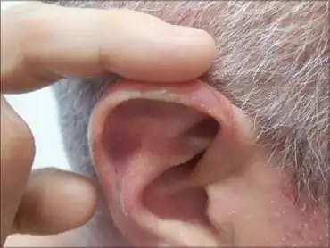 Weathering nodules of ear is a cutaneous condition seen on the helices of the ears of Caucasian men who have a history of significant cumulative sun exposure.[1][2]