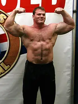 Strength training is also recorded as far back as ancient Greek and ancient Persian times.[16] Weightlifting is used as an end to achieve different goals. For example, in weight training, a type of exercise using weights to increase muscle strength, and in bodybuilding, a form of body modification for aesthetic reasons. Strength training, bodybuilding, and working out to achieve a general level of physical fitness have all historically been closely associated with weightlifting. Weightlifting is very beneficial for health in countless ways. Weightlifting induces the production of collagen proteins which helps build structure and strength of tendons and ligaments. It also is optimal for promoting and improving joint stability. Weightlifting can also increase metabolism and increases resting metabolic rate. This means the body can burn calories faster and the body uses those calories to increase and build muscle mass.[17] However, it is possible to engage in a training regimen for any of these purpose using exercises or equipment other than weights. Conversely, because the goal of bodybuilding is often to generate a particular appearance, a person who engages in weightlifting only to increase strength, or for competitive purposes, may not achieve the physical appearance sought in bodybuilding. Weight training aims to build muscle by prompting two different types of hypertrophy: sarcoplasmic and myofibrillar.[18] Sarcoplasmic hypertrophy leads to larger muscles and so is favored by bodybuilders more than myofibrillar hypertrophy, which builds athletic strength. Sarcoplasmic hypertrophy is triggered by increasing repetitions, whereas myofibrillar hypertrophy is triggered by lifting heavier weight.[19]
