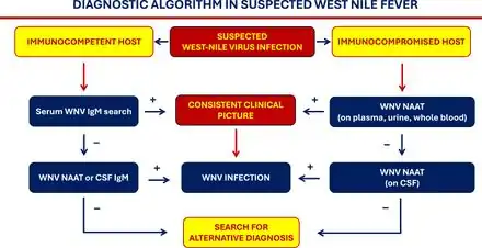 - ↑ "West Nile Virus Differential Diagnoses". emedicine.medscape.com. Archived from the original on 14 April 2020. Retrieved 12 April 2022.