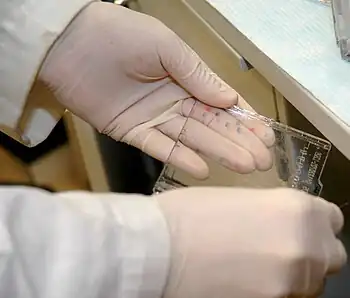 Some forms of Lyme disease testing employ western blotting.[15] A western blot can also be used as a confirmatory test for Hepatitis B infection and HSV-2 (Herpes Type 2) infection.[16][17] In veterinary medicine, a western blot is sometimes used to confirm FIV+ status in cats.[18]