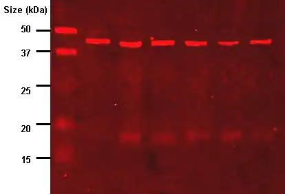- ↑ Gilda, J. E.; Gomes, A. V. (2013). "Stain-Free total protein staining is a superior loading control to β-actin for Western blots". Analytical Biochemistry. 440 (2): 186–8. doi:10.1016/j.ab.2013.05.027. PMC 3809032. PMID 23747530.